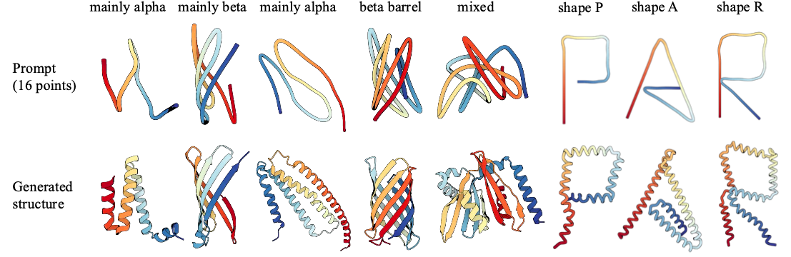 a simple prompt (e.g., 16 points) can specify a protein’s coarse layout, from which the model generates